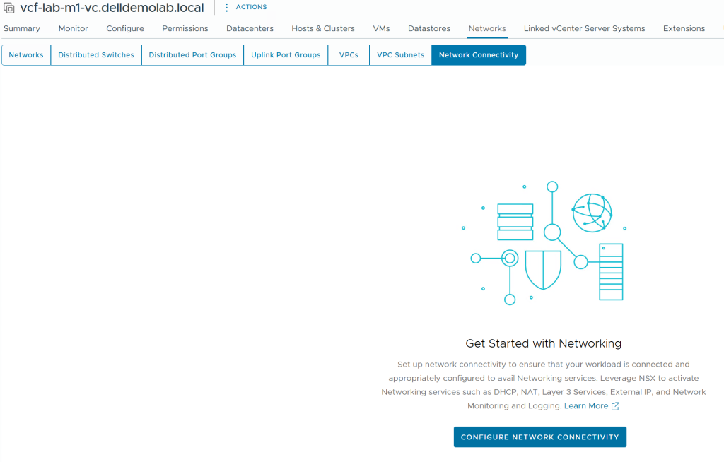 Click “Configure Network Connectivity” and we will see the wizard. There’s 2 deployment modes, we’ll be using Centralized Connectivity which deploys an edge cluster with BGP connectivity to my lab network.